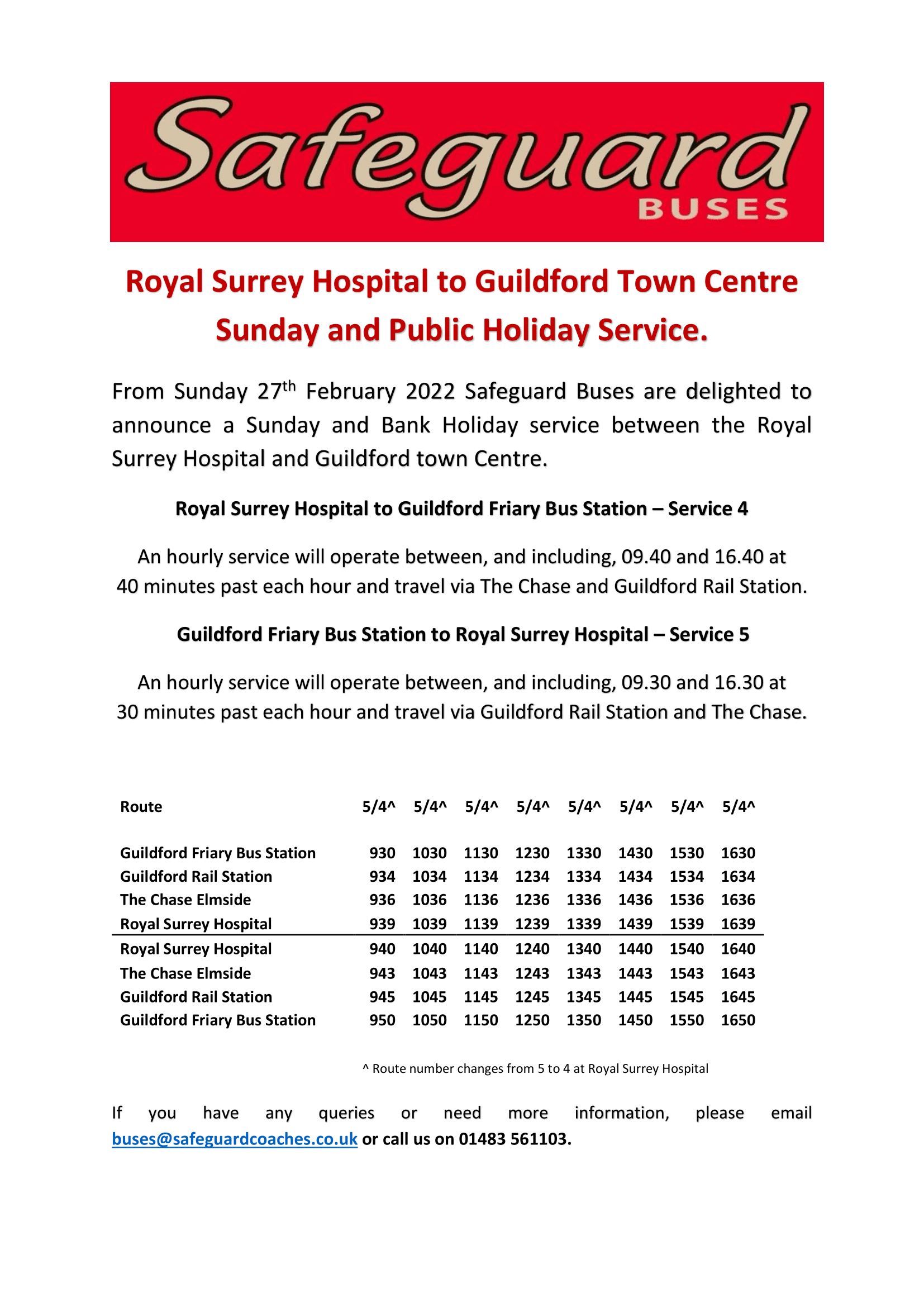 From Sunday 27 th February 2022 Safeguard Buses are delighted to