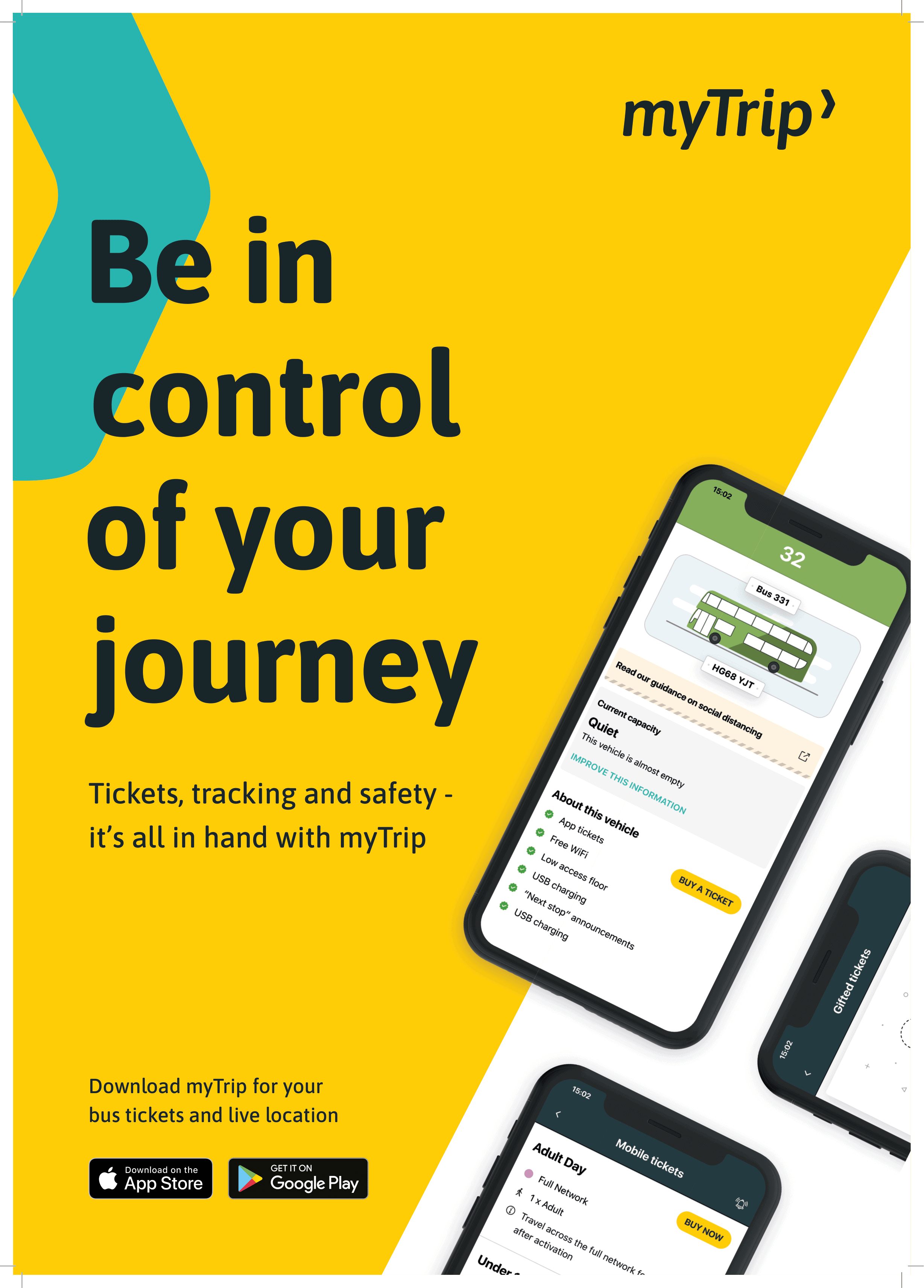 All tickets are available to purchase with cash or contactless bank card from the driver or via myTrip